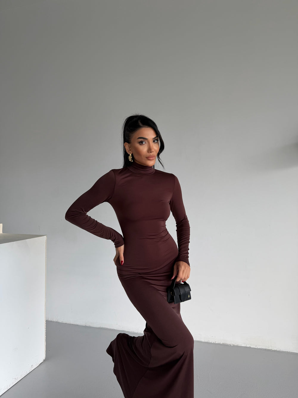 Yüksek balıkçı yaka detayı ve uzun formu ile özel davetlerden gündelik şıklığa kadar her ortamda dikkat çeker. Minimal tasarımı, gösterişli duruşuyla birleşerek “tek parça ile şıklık” arayanların favorisi olur.