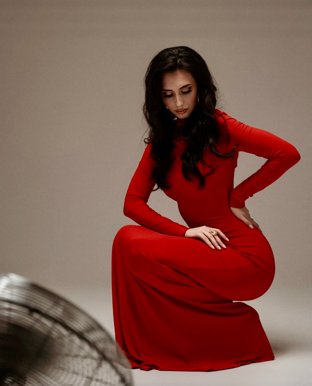 Yumuşak ve trend Sandy kumaşıyla vücudu saran, çan etek kısmı ve yarım balıkçı yaka detayıyla hem rahat hem zarif bir görünüm sunan bu maxi elbise, günlük ve özel gün kullanımına uygundur.