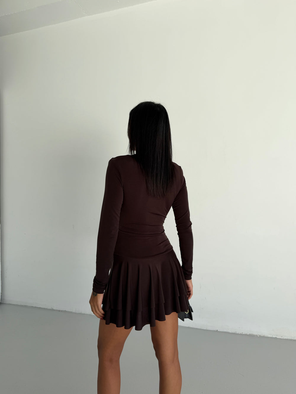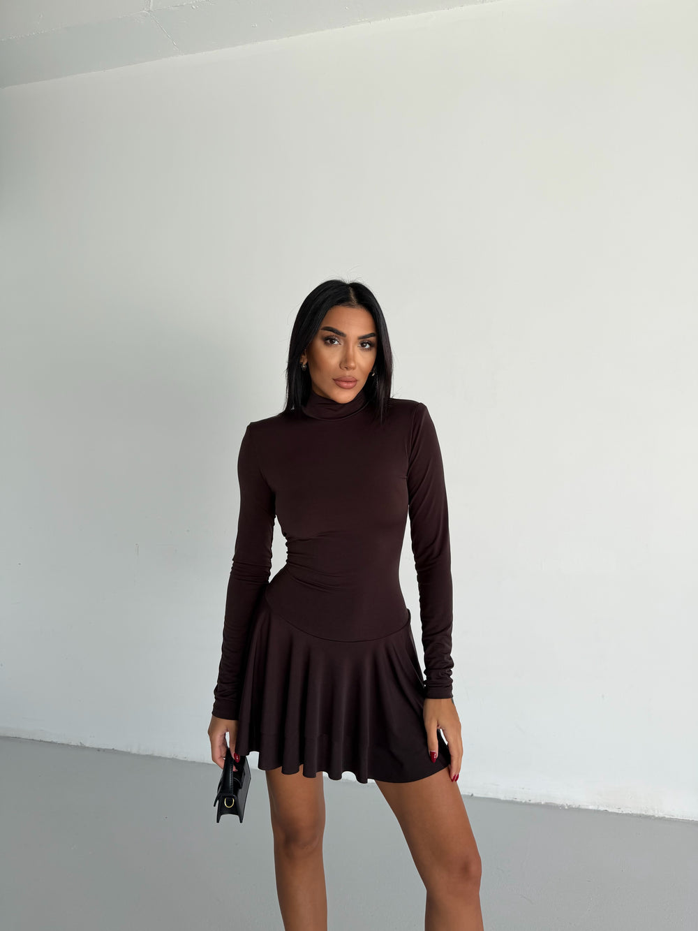 Vücudu saran üst formu belinizi zarifçe ortaya çıkarırken, dökümlü eteği hareket özgürlüğü ve şıklığı bir arada sunar.