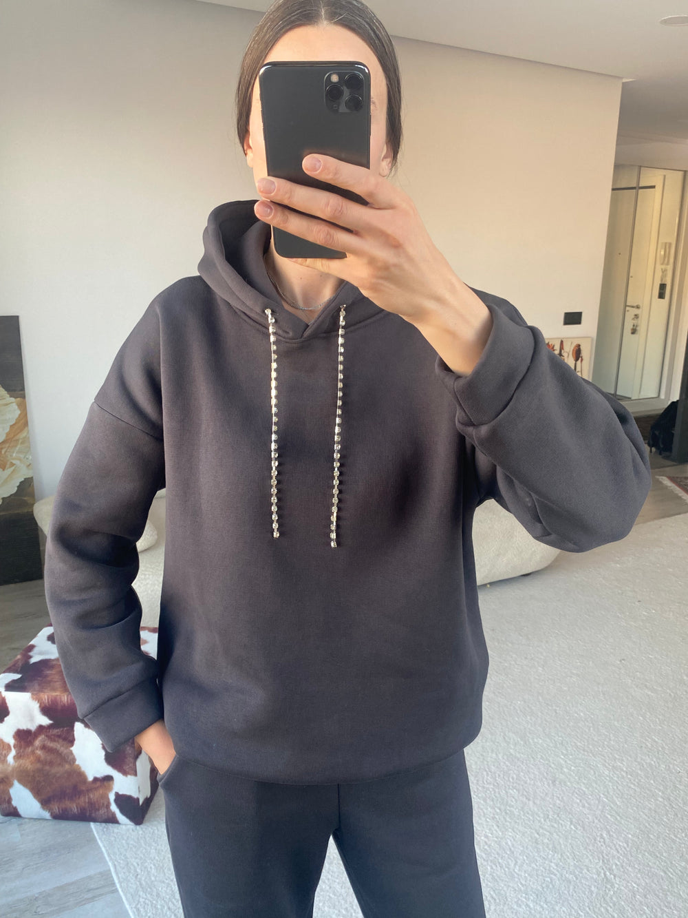 LAYLA MÜCEVHER İPLİ EŞOFMAN TAKIMI - ANTRASİT