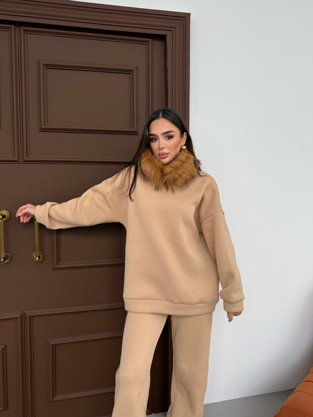 Rahatlığı lüks görüntü ile buluşturan Pamela Kürklü Eşofman Takımı ile sınırların ötesine geçin! %100 Pamuk içi şardonlu kumaştan üretilen takım ithal kürk ile çevrelenmiş kapüşona sahip. Rahat kalıbı ile bedeninize tam uyum sağlarken 3 farklı renk seçeneği ile beğeninize sunuldu. Günün her anı için kurtarıcı bir parça olarak kış gardrobunuza rahatlıkla ekleyebileceğiniz bir parça.