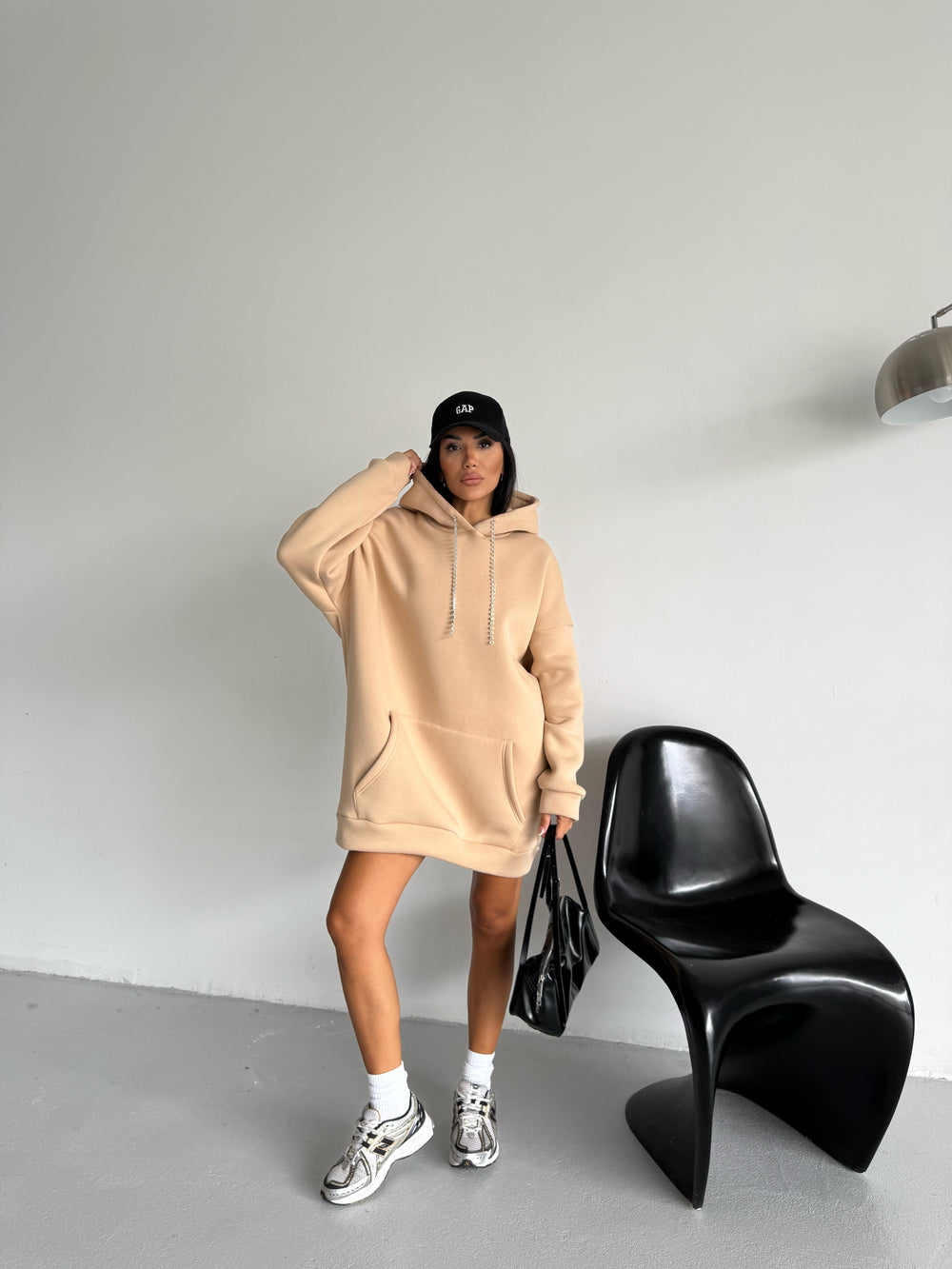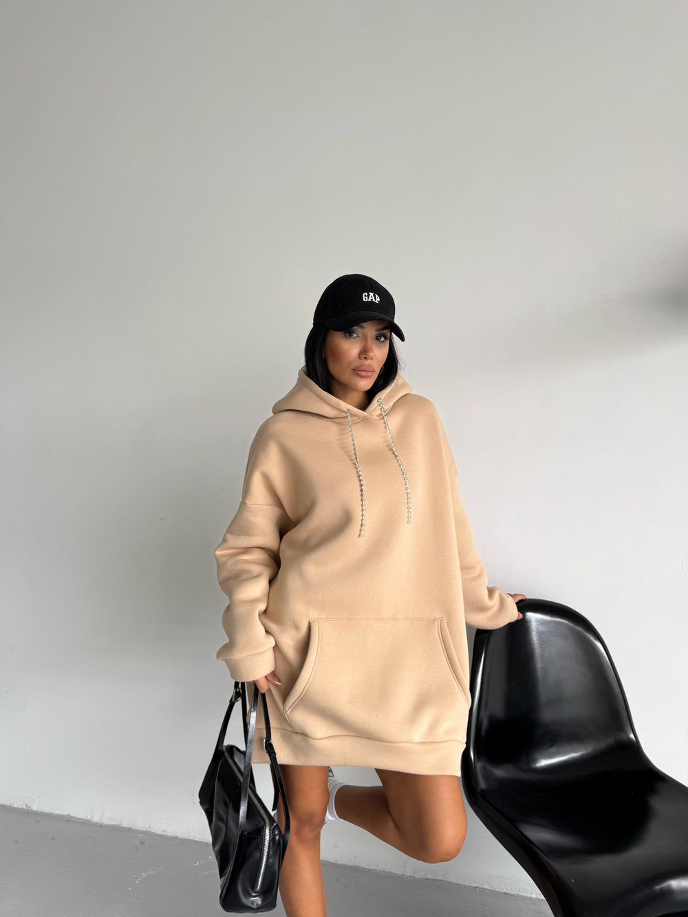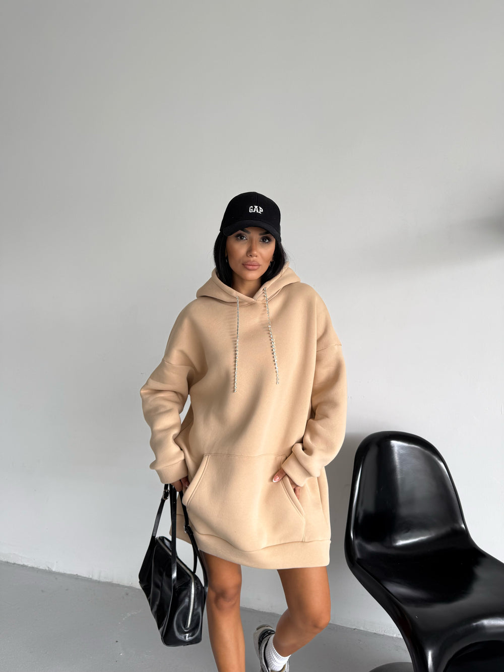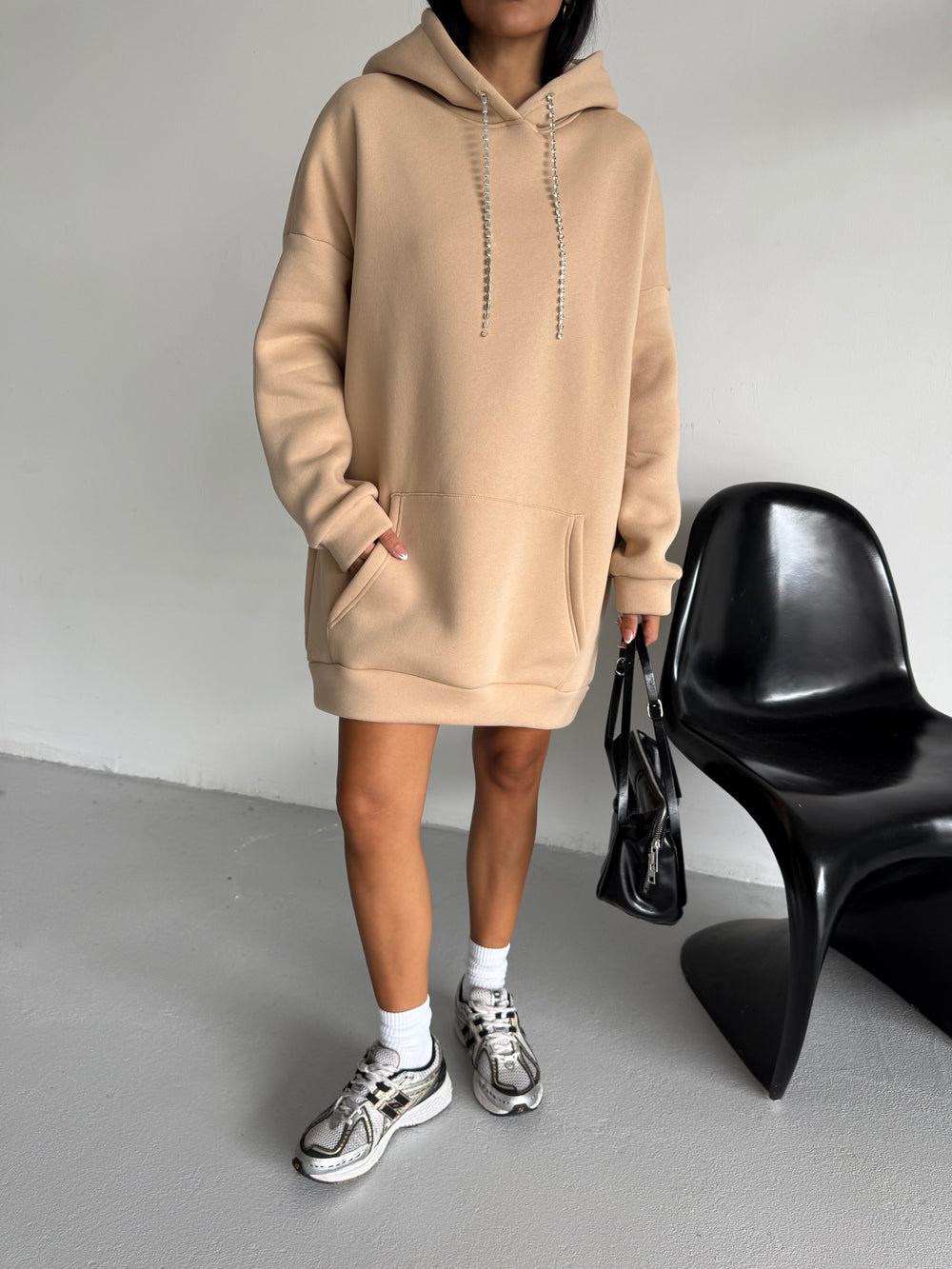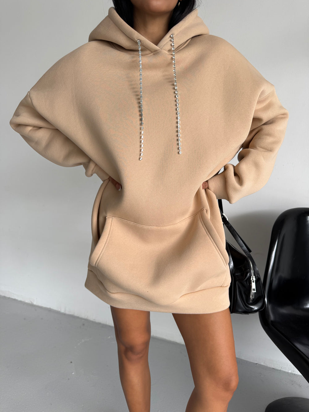 • Özellikler: Mücevher ipli kapüşon, oversize kesim, kanguru cepli tasarım